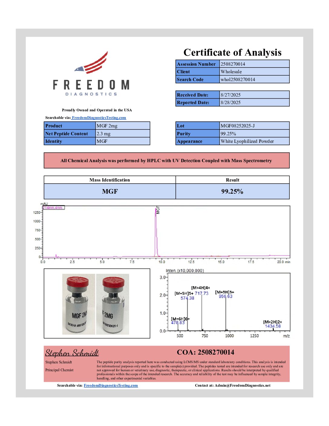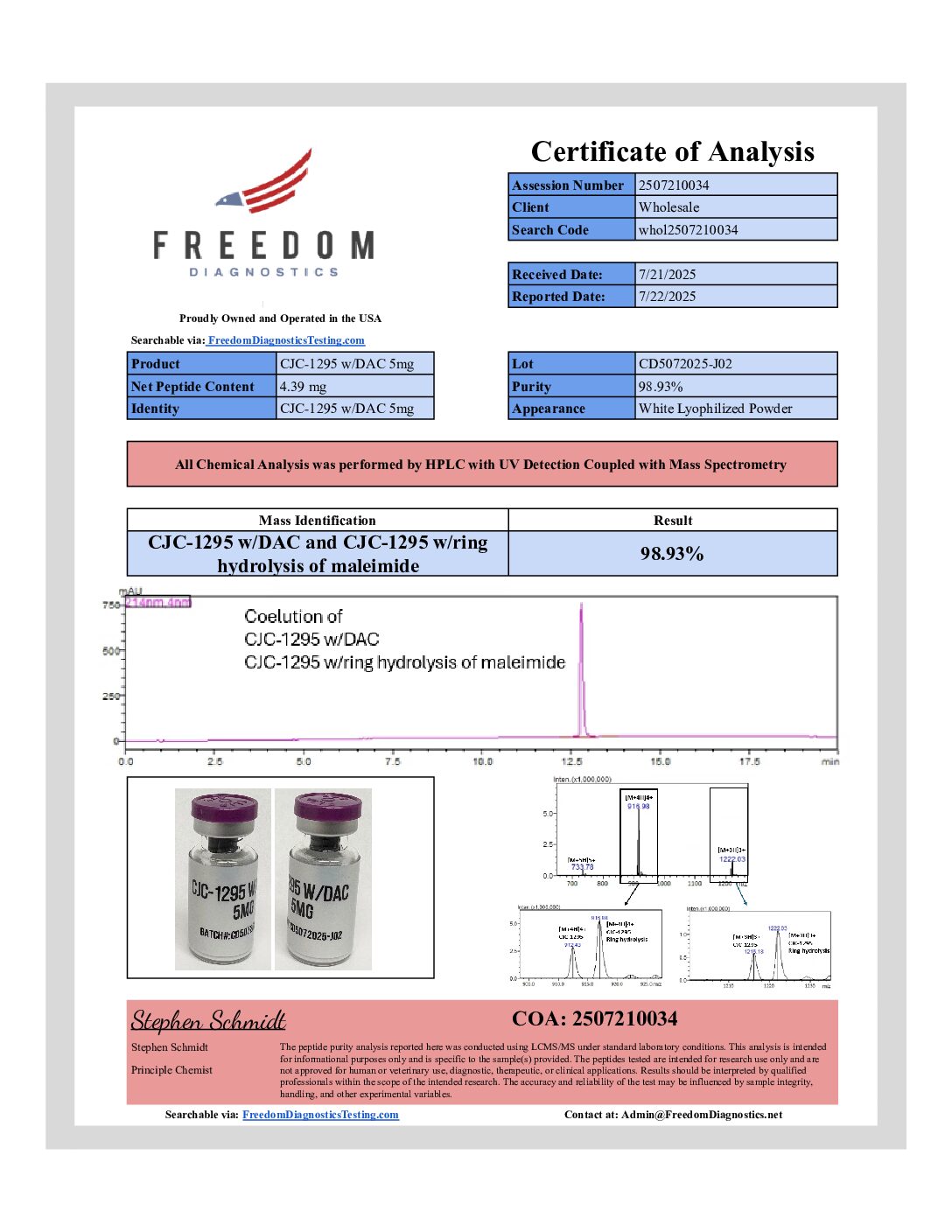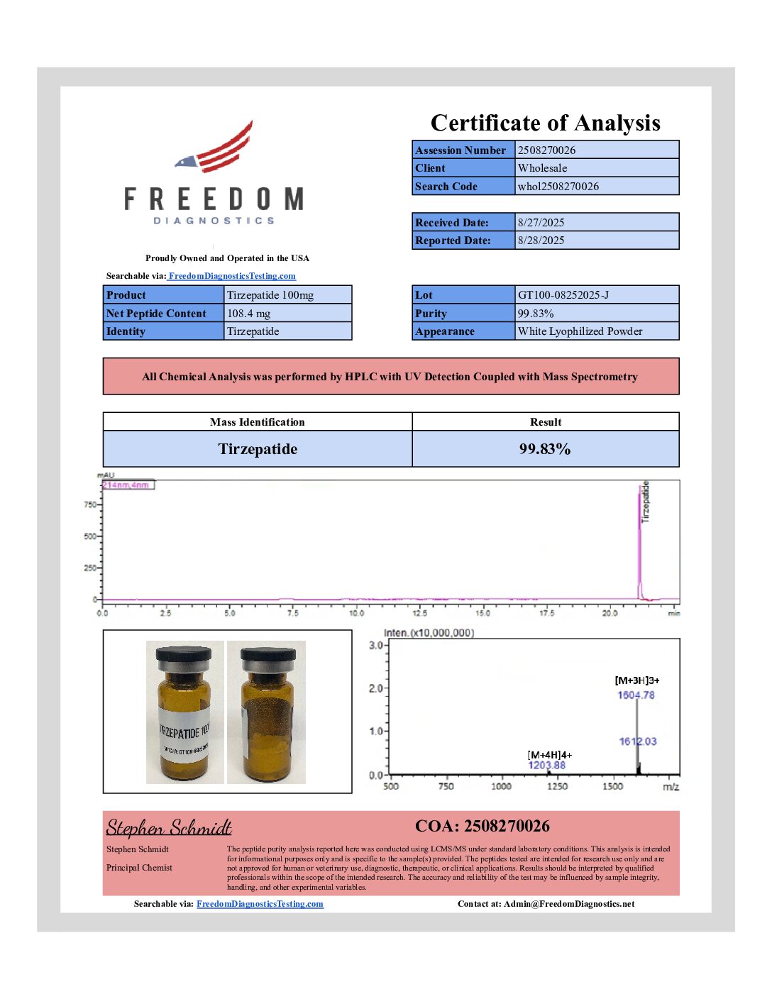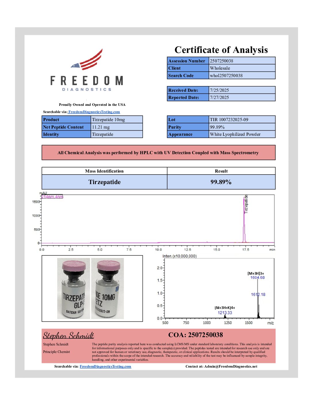 “Physician Only” Quality (98% Pure or Better) at “Research Only” Prices
