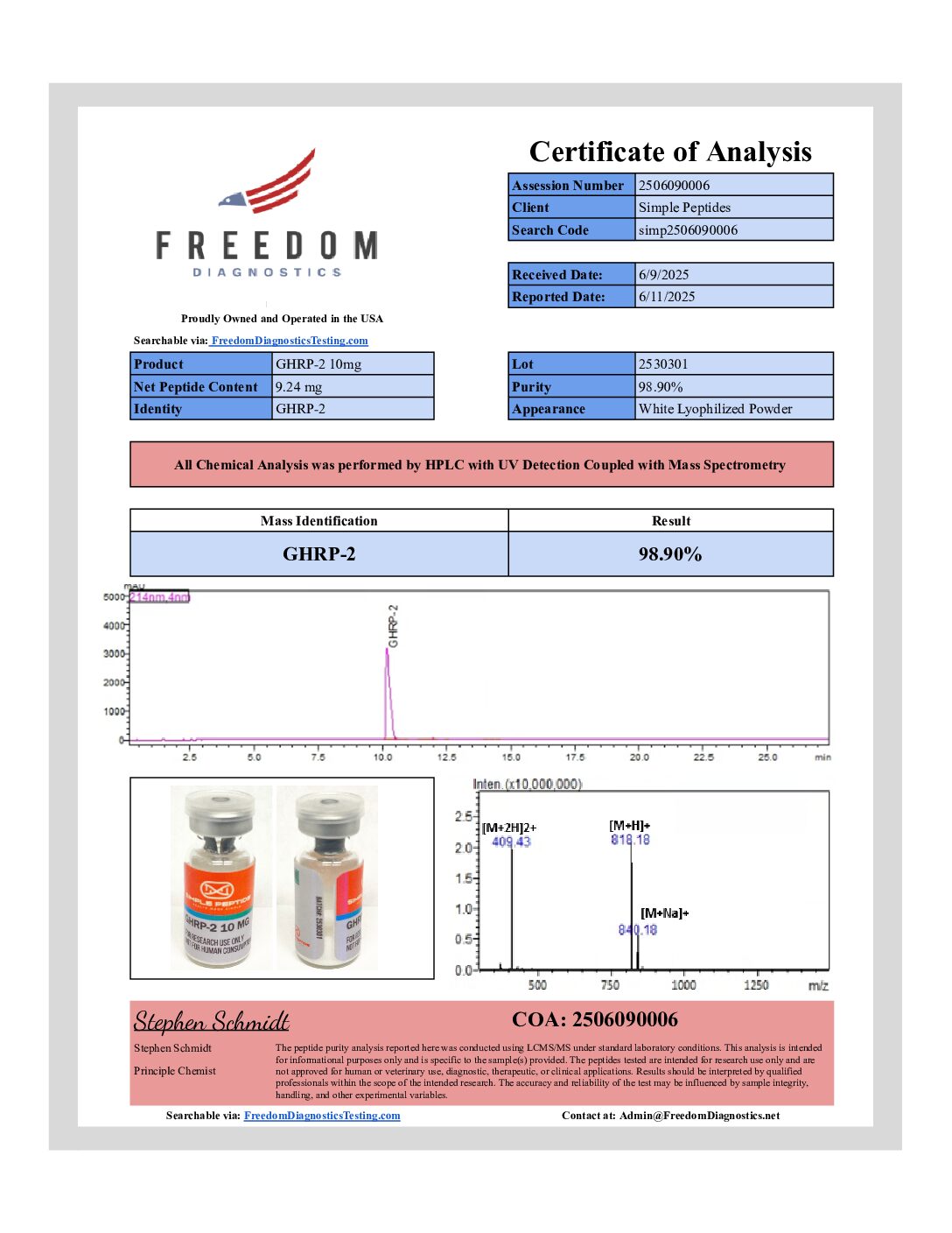 Simple Peptide is a chemical supplier. Simple Peptide is not a compounding pharmacy or chemical compounding facility as defined under 503A of the Federal Food, Drug, and Cosmetic Act. Simple Peptide is not an outsourcing facility as defined under 503B of the Federal Food, Drug, and Cosmetic Act.